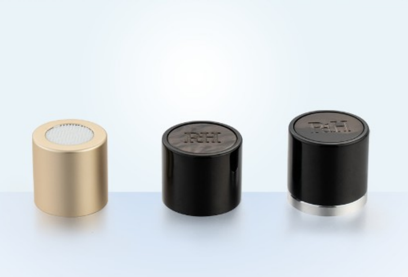Vantaggi dei tappi per profumi in alluminio-plastica: forte lucentezza metallica, evidente senso visivo premium, diversi processi superficiali (anodizzazione, galvanica, spazzolatura, sabbiatura), più in linea con l'estetica dell'imballaggio dei profumi di fascia alta.
